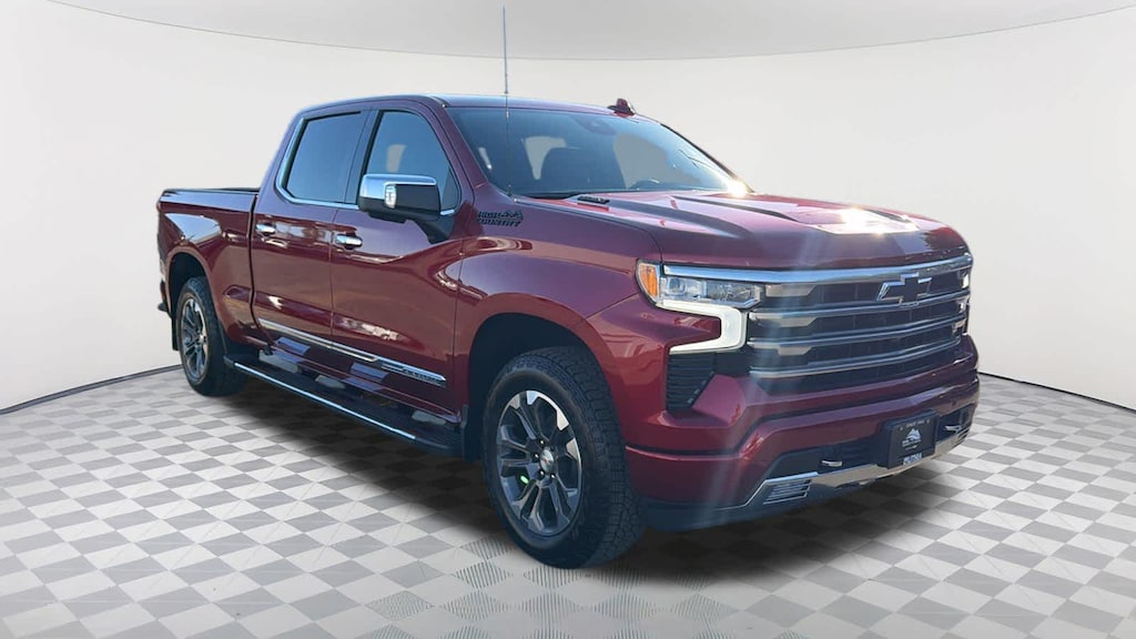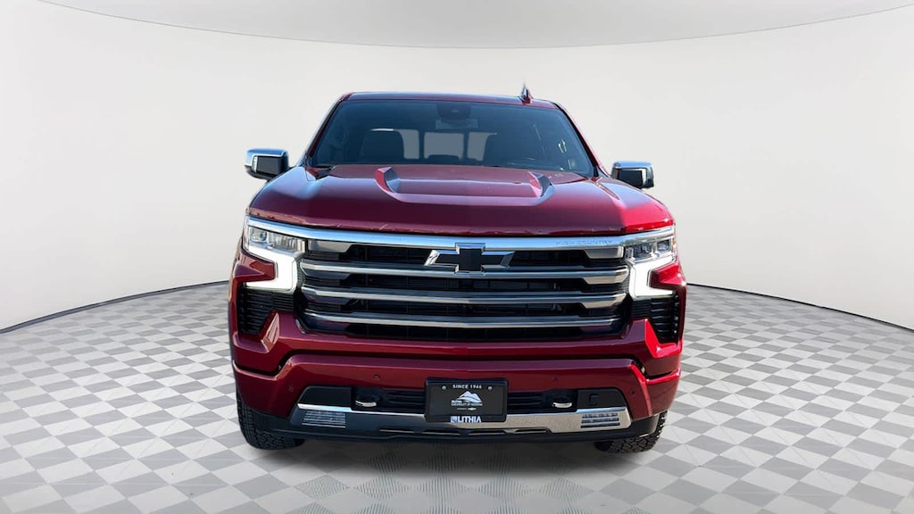ENGINE, DURAMAX 3.0L TURBO-DIESEL I6 (305 hp [227 kW] @ 3750 rpm, 495 lb-ft of torque [671 Nm] @ 2750 rpm) (Includes (KW5) 220-amp alternator and (K05) engine block heater.), AUDIO SYSTEM, CHEVROLET INFOTAINMENT 3 PREMIUM SYSTEM with Google built-in compatibility (select service plan required, terms and limitations apply) including navigation capability, 13.4" diagonal HD color touchscreen, includes multi-touch display, AM/FM stereo, Bluetooth® streaming audio for music and most phones; featuring Wireless Apple CarPlay® and Wireless Android Auto® capability for compatible phones, advanced voice recognition, in-vehicle apps, personalized profiles for infotainment and vehicle settings (STD), TRANSMISSION, 10-SPEED AUTOMATIC with Electronic Transmission Range Selector (ETRS), electronically controlled with overdrive, tow/haul mode and steering column paddle shifters. Includes Cruise Grade Braking and Powertrain Grade Braking. Chevrolet High Country with Radiant Red Tintcoat exterior and Jet Black interior features a Straight 6 Cylinder Engine with 305 HP at 3750 RPM*.