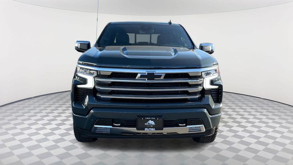 ENGINE, DURAMAX 3.0L TURBO-DIESEL I6 (305 hp [227 kW] @ 3750 rpm, 495 lb-ft of torque [671 Nm] @ 2750 rpm) (Includes (KW5) 220-amp alternator and (K05) engine block heater.), AUDIO SYSTEM, CHEVROLET INFOTAINMENT 3 PREMIUM SYSTEM with Google built-in compatibility (select service plan required, terms and limitations apply) including navigation capability, 13.4" diagonal HD color touchscreen, includes multi-touch display, AM/FM stereo, Bluetooth® streaming audio for music and most phones; featuring Wireless Apple CarPlay® and Wireless Android Auto® capability for compatible phones, advanced voice recognition, in-vehicle apps, personalized profiles for infotainment and vehicle settings (STD), TRANSMISSION, 10-SPEED AUTOMATIC with Electronic Transmission Range Selector (ETRS), electronically controlled with overdrive, tow/haul mode and steering column paddle shifters. Includes Cruise Grade Braking and Powertrain Grade Braking. Chevrolet High Country with Cypress Gray exterior and Jet Black interior features a Straight 6 Cylinder Engine with 305 HP at 3750 RPM*.