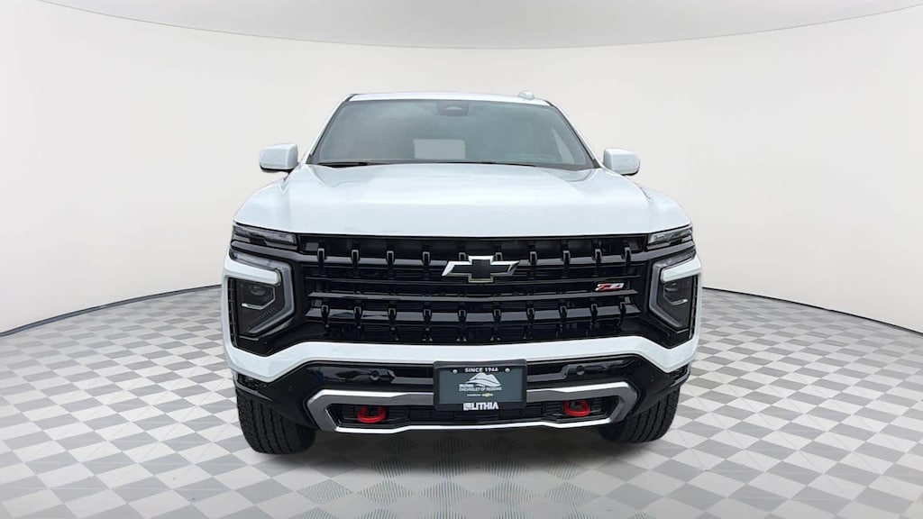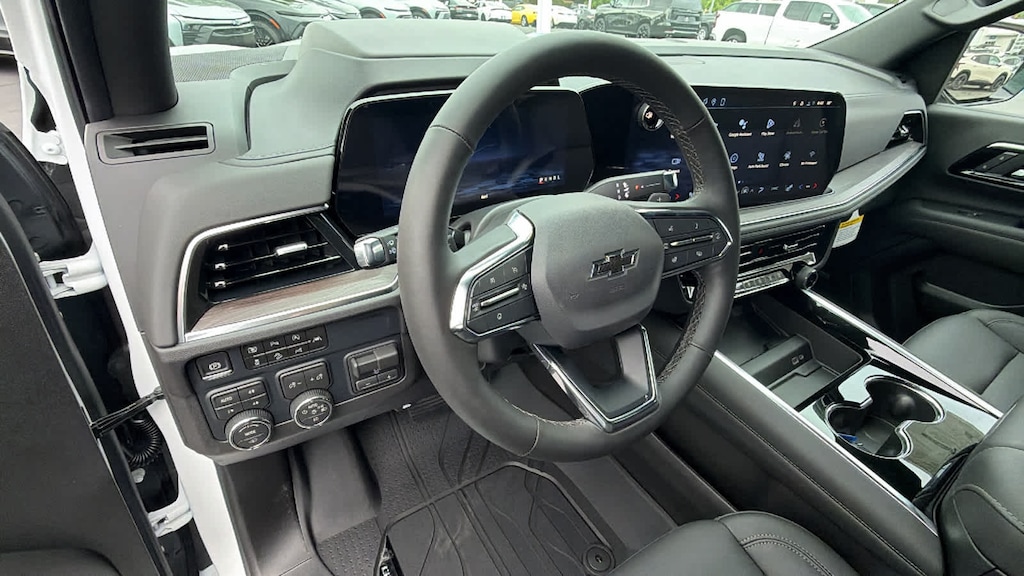 COMFORT PACKAGE includes (A45) memory settings, (UQS) Bose 10-speaker Surround with CenterPoint, (DXR) outside heated power-adjustable, power-folding, body-color mirrors with driver-side auto-dimming and integrated turn signal indicators, (KI3) heated steering wheel, (KA6) second row outboard heated seats, (ATT) second row power 60/40 split-folding bench seats, (AS8) third row power 60/40 split-folding bench seats, (TGE) LED animated headlamps and (TAU) LED animated tail lamps, SUNROOF, POWER PANORAMIC, DUAL-PANE, TILT-SLIDING with express-open and close and power sunshade, TECHNOLOGY PACKAGE Includes (DRZ) Rear Camera Mirror and (UV6) Head-Up Display.), LPO, PREMIUM LINER PROTECTION PACKAGE includes (AAK) 1st and 2nd row premium floor liners, LPO, (RIB) 3rd row all-weather floor liner, LPO and (CAV) all-weather cargo mat, LPO (dealer-installed), SEATS, SECOND ROW BUCKET, POWER RELEASE, SUSPENSION, AIR RIDE ADAPTIVE, ENGINE, 5.3L ECOTEC3 V8 with Dynamic Fuel Management, Direct Injection and Variable Valve Timing, includes aluminum block construction (355 hp [265 kW] @ 5600 rpm, 383 lb-ft of torque [518 Nm] @ 4100 rpm) (STD), TRANSMISSION, 10-SPEED AUTOMATIC electronically controlled with overdrive, includes Traction Select System including tow/haul (STD), AUDIO SYSTEM, 17.7" DIAGONAL ADVANCED COLOR LCD DISPLAY with Google built-in compatibility (select service plan required, terms and limitations apply), including navigation capability, connected apps, personalized profiles for each driver's settings, Natural Voice Recognition and Phone Integration (STD), ADVANCED TRAILERING PACKAGE includes (UKW) Blind Zone Steering Assist with Trailering, (PZ8) Hitch View and (UET) Smart Trailer Integration Indicator. Chevrolet Z71 with Summit White exterior and Jet Black interior features a 8 Cylinder Engine with 355 HP at 5600 RPM*.