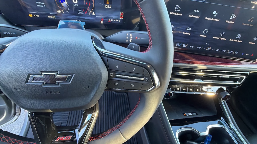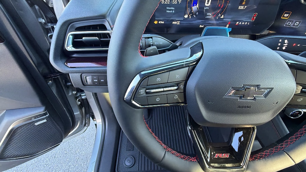 ENGINE, 2.5L TURBO DOHC SIDI WITH VARIABLE VALVE TIMING (VVT) (328 hp [244 kW] @ 5500 rpm, 326 lb-ft of torque [442 N-m] @ 3500 rpm) (STD), TRANSMISSION, 8-SPEED AUTOMATIC (STD). Chevrolet AWD RS with Sterling Gray Metallic exterior and RS Jet Black with Torch Red accents interior features a 4 Cylinder Engine with 328 HP at 5500 RPM*.