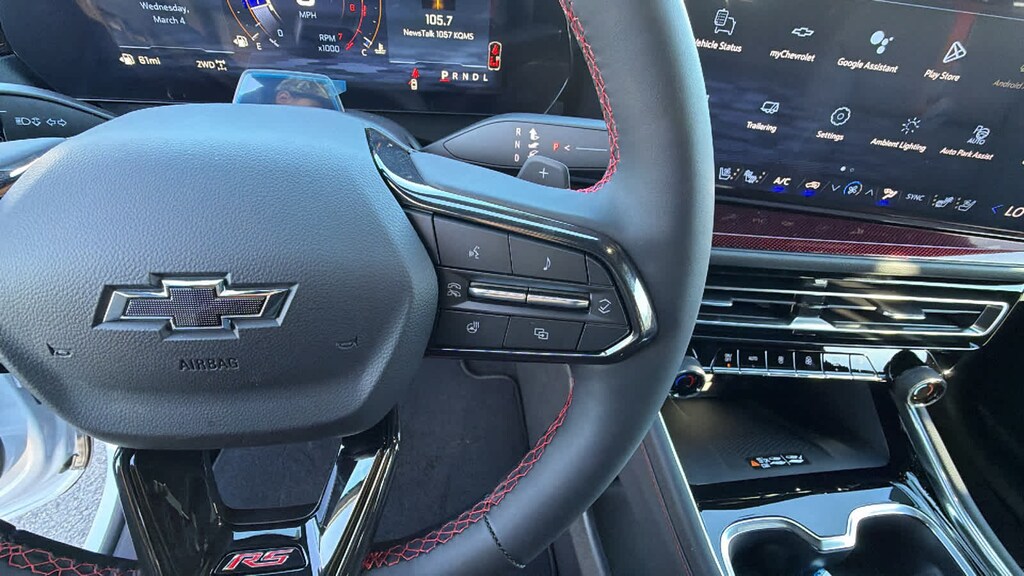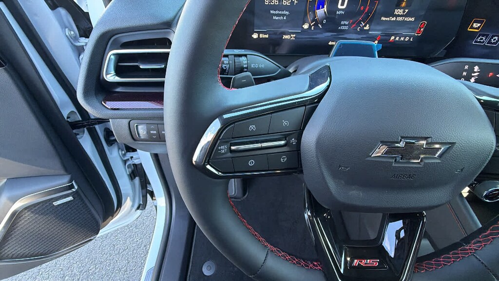 SUNROOF, POWER, DUAL GLASS, PANORAMIC, SLIDING, WITH POWER SUNSHADE, ENGINE, 2.5L TURBO DOHC SIDI WITH VARIABLE VALVE TIMING (VVT) (328 hp [244 kW] @ 5500 rpm, 326 lb-ft of torque [442 N-m] @ 3500 rpm) (STD), TRANSMISSION, 8-SPEED AUTOMATIC (STD). Chevrolet AWD RS with Polar White Tricoat exterior and RS Jet Black with Torch Red accents interior features a 4 Cylinder Engine with 328 HP at 5500 RPM*.