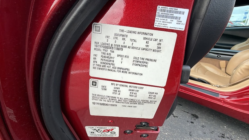 SPORT MAGNESIUM WHEELS, ADJUSTABLE SPORT BUCKET SEATS, REMOTE CD CHANGER, ELECTRONIC DUAL ZONE AIR CONDITIONING, PWR TELESCOPIC STEERING COLUMN, 6-WAY PWR PASSENGER SEAT. Chevrolet Corvette with Magnetic Red Metallic exterior and Light Oak interior features a 8 Cylinder Engine with 345 HP at 5600 RPM*.