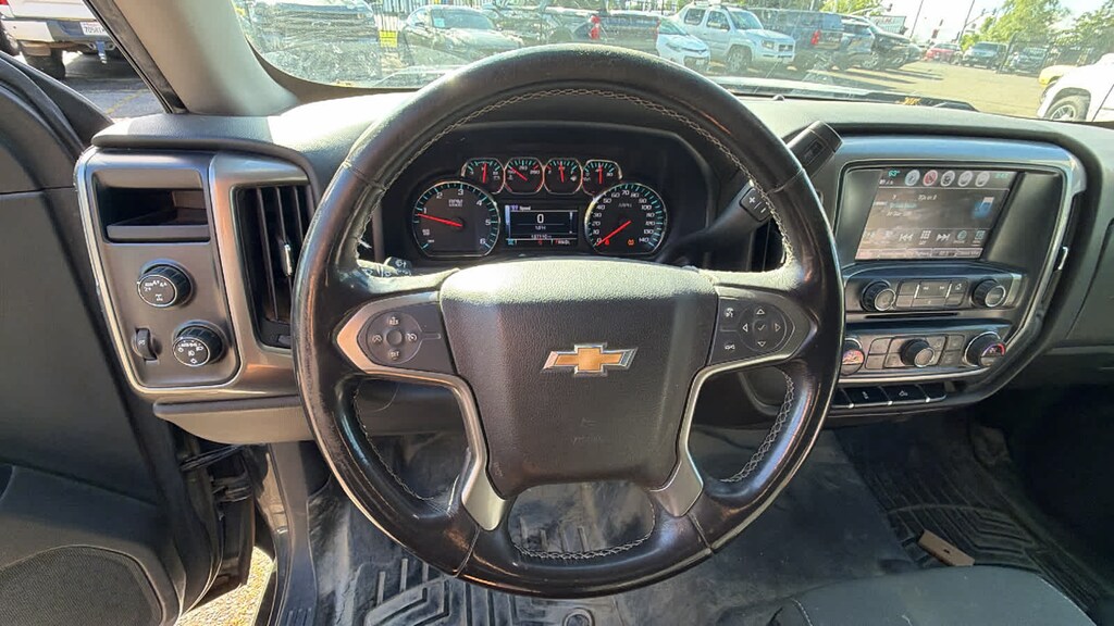 LT EASSIST PACKAGE includes (L8B) 5.3L V8 eAssist engine, (M5X) 8-speed automatic eAssist transmission, (UF2) LED Lighting, cargo box and (5JY) soft-folding tonneau cover, LPO includes (C6C) 7,400 lbs. GVWR. ALL STAR EDITION for Crew Cab and Double Cab, includes (AG1) driver 10-way power seat adjuster with (AZ3) bench seat only, (CJ2) dual-zone climate control, (BTV) Remote Vehicle Starter system, (C49) rear-window defogger and (KI4) 110-volt power outlet (Includes (Z82) Trailering Package, (G80) locking differential and (T3U) LED front fog lamps. (N37) manual tilt and telescopic steering column included with (L83) 5.3L EcoTec3 V8 engine. WHEELS, 20" X 9" (50.8 CM X 22.9 CM) CHROME, TRAILERING PACKAGE includes trailer hitch, 7-pin and 4-pin connectors Includes (G80) locking rear differential. SEAT ADJUSTER, DRIVER 10-WAY POWER, REMOTE VEHICLE STARTER SYSTEM Includes (UTJ) Theft-deterrent system.), SEATS, FRONT 40/20/40 SPLIT-BENCH, 3-PASSENGER, AVAILABLE IN CLOTH OR LEATHER includes driver and front passenger recline with outboard head restraints and center fold-down armrest with storage. Also includes manually adjustable driver lumbar, lockable storage compartment in seat cushion, and storage pockets. (STD) Includes (AG1) driver 10-way power seat-adjuster with (PCY) LT Fleet Convenience Package, (PDA) Texas Edition or (PDU) All Star Edition.), AUDIO SYSTEM, CHEVROLET MYLINK RADIO WITH 8" DIAGONAL COLOR TOUCH-SCREEN, AM/FM STEREO with seek-and-scan and digital clock, includes Bluetooth® streaming audio for music and select phones; USB ports; auxiliary jack; voice-activated technology for radio and phone; and Shop with the ability to browse, select and install apps to your vehicle. Apps include Pandora, iHeartRadio, The Weather Channel and more. (STD). Chevrolet LT with GRAPHITE METALLIC exterior and JET BLACK interior features a V6 Cylinder Engine with 285 HP at 5300 RPM*.