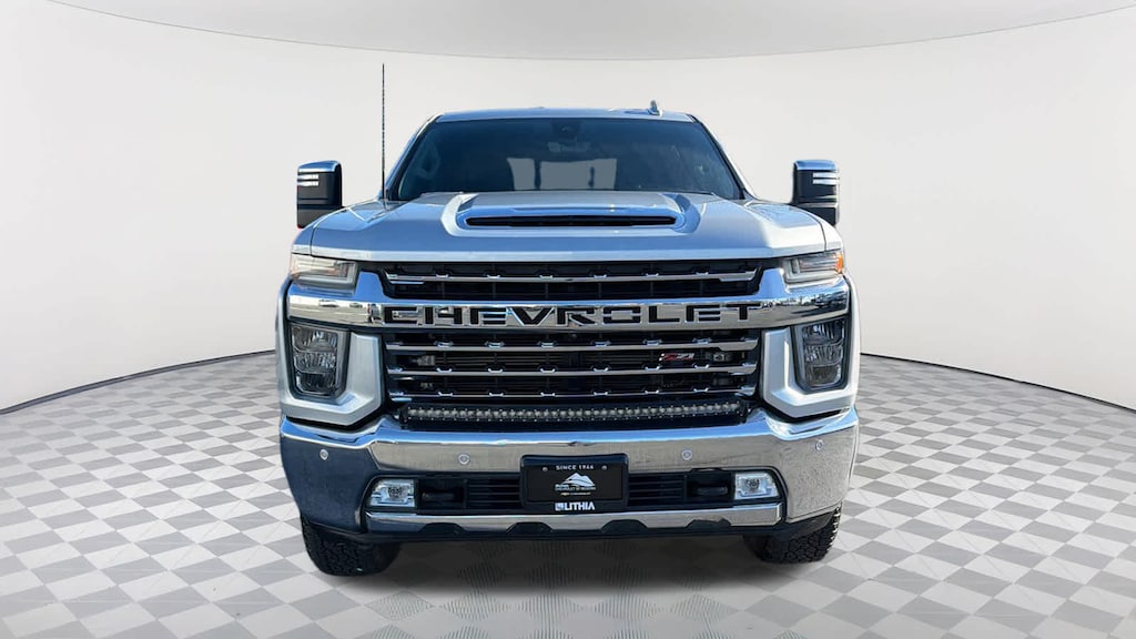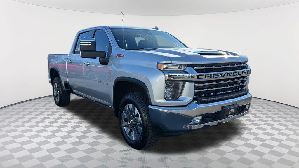 ENGINE, DURAMAX 6.6L TURBO-DIESEL V8 B20-Diesel compatible, (445 hp [332 kW] @ 2800 rpm, 910 lb-ft of torque [1220 Nm] @ 1600 rpm), LTZ PREMIUM PACKAGE includes (PCZ) LTZ Convenience Package, (PCN) LTZ Convenience Package II, (PQB) Safety Package, (PDJ) Safety Package II, (CWM) Technology Package, (RTH) 20" polished aluminum wheels and (QF9) LT275/65R20 all-terrain, blackwall tires, TECHNOLOGY PACKAGE includes (UVS) HD Surround Vision with Two Trailer View Camera Provisions, (DRZ) Rear Camera Mirror, (UV6) 15" Diagonal Head-Up Display and (UVN) Bed View Camera Includes (UHS) 8" enhanced Driver Information Center. LTZ CONVENIENCE PACKAGE includes (A50) bucket seats with (D07) center console, (KQV) heated and ventilated front seats, (A48) rear sliding power window, (UG1) Universal Home Remote, (QT6) power up/down tailgate, (UF2) bed LED cargo area lighting and (KA6) rear heated seats, LTZ CONVENIENCE PACKAGE II includes (IOT) Chevrolet Infotainment System with Navigation and 8" diagonal color touch-screen, (UQA) Bose Premium Audio System and (K4C) Wireless Charging, SUNROOF, POWER ON CREW CAB MODELS, SAFETY PACKAGE includes (UD5) Front and Rear Park Assist, (UKC) Lane Change Alert with Side Blind Zone Alert and (UFG) Rear Cross Traffic Alert, ASSIST STEPS, CHROME TUBULAR, 6" RECTANGULAR, SAFETY PACKAGE II includes (UEU) Forward Collision Alert, (UFL) Lane Departure Warning, (UHY) Automatic Emergency Braking, (TQ5) IntelliBeam headlamps, (UE4) Following Distance Indicator and (HS1) Safety Alert Seat, AUDIO SYSTEM, CHEVROLET INFOTAINMENT 3 PREMIUM SYSTEM WITH CONNECTED NAVIGATION 8" diagonal HD color touchscreen, AM/FM stereo, Bluetooth® audio streaming for 2 active devices, Apple CarPlay® and Android Auto® capable, enhanced voice recognition, additional memory for in-vehicle apps, cloud connected personalization for select infotainment and vehicle settings. Subscription required for enhanced and connected services after trial period. Includes (PZ8) High Guidance with Hitch View.), TRANSMISSION, ALLISON 10-SPEED AUTOMATIC. Chevrolet LTZ with SILVER ICE METALLIC exterior and JET BLACK interior features a 8 Cylinder Engine with 401 HP at 5200 RPM*.