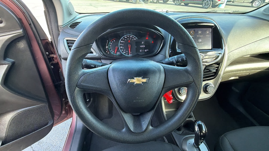 AUDIO SYSTEM, CHEVROLET INFOTAINMENT 3 SYSTEM, 7" DIAGONAL COLOR TOUCHSCREEN, AM/FM STEREO. Additional features for compatible phones include: Bluetooth® audio streaming for 2 active devices, voice command pass-through to phone, Apple CarPlay® and Android Auto® capable (STD), ENGINE, 1.4L DOHC 4-CYLINDER MFI (98 hp [73.07 kW] @ 6200 rpm, 94 lb-ft of torque [127.4 N-m] @ 4400 rpm) (STD), TRANSMISSION, CONTINUOUS VARIABLE (CVT) (STD). Chevrolet LS with PASSION FRUIT exterior and JET BLACK interior features a 4 Cylinder Engine with 98 HP at 6200 RPM*.