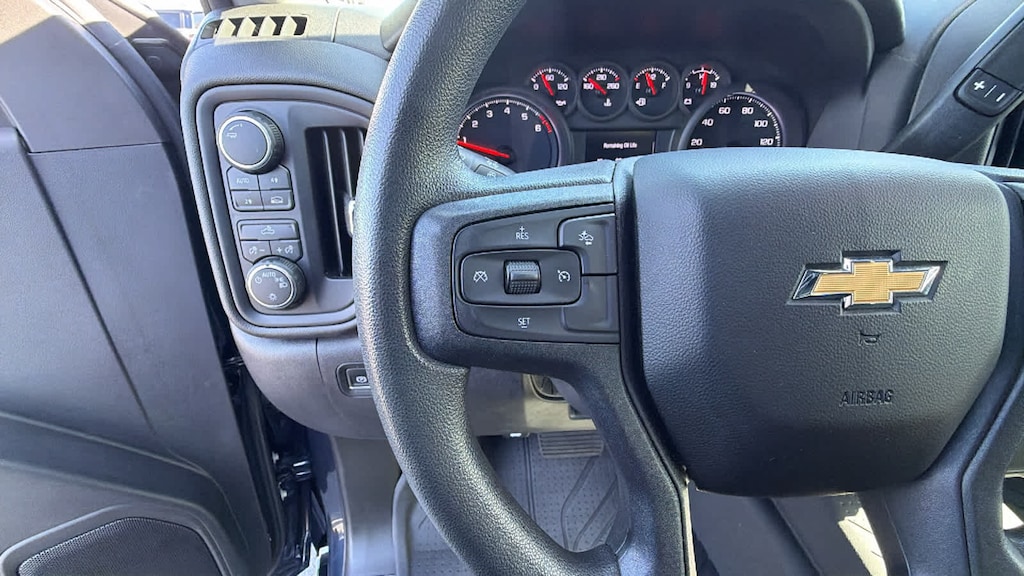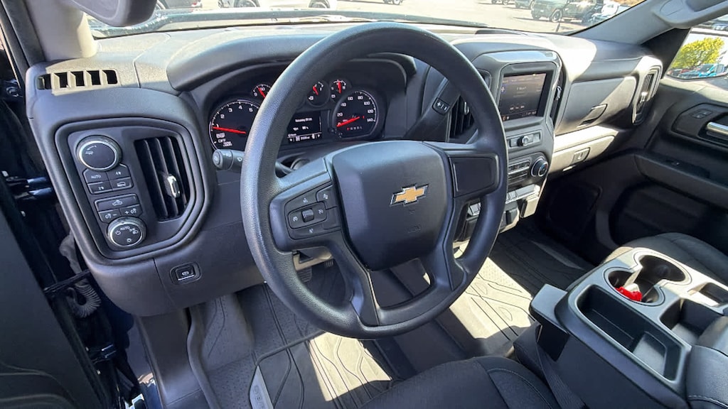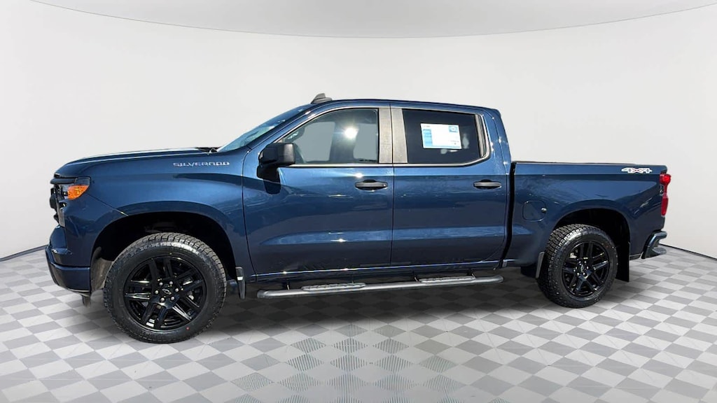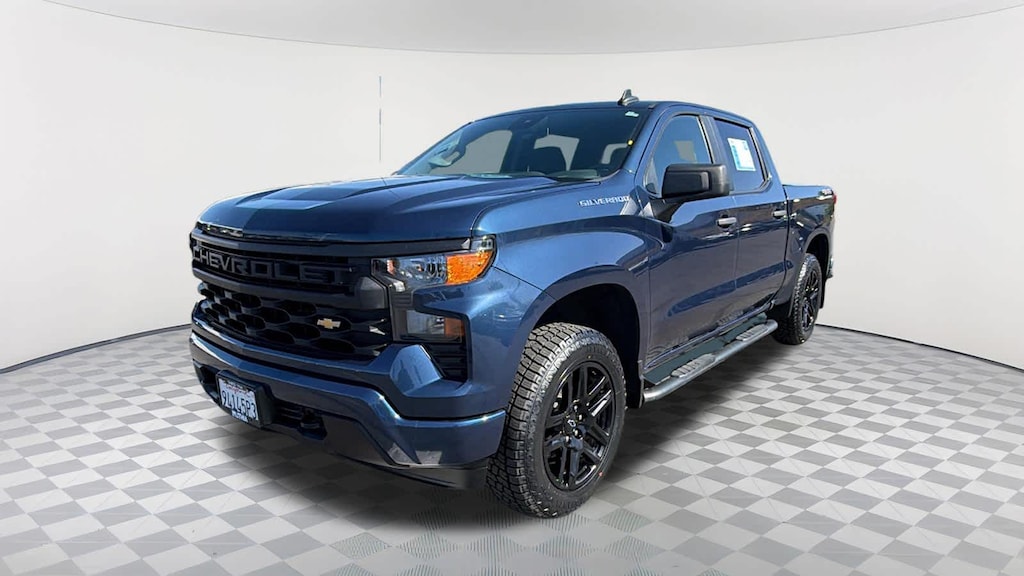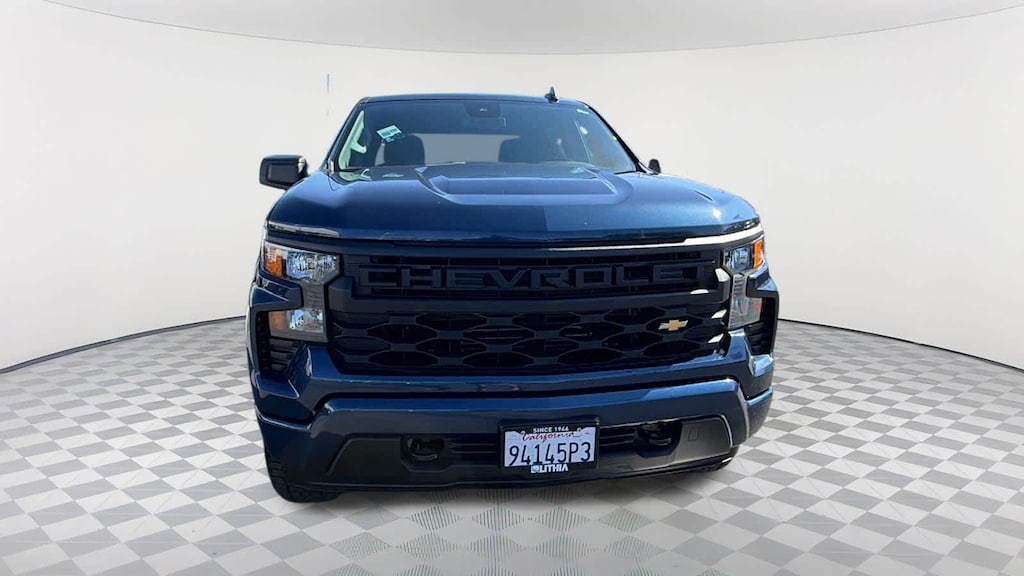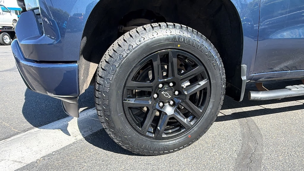 CHEVYTEC SPRAY-ON BEDLINER, BLACK WITH CHEVROLET LOGO (does not include spray-on liner on tailgate due to Black composite inner panel), AUDIO SYSTEM, CHEVROLET INFOTAINMENT 3 SYSTEM 7" diagonal color touchscreen, AM/FM stereo. Additional features for compatible phones include: Bluetooth® audio streaming for 2 active devices, voice command pass-through to phone, wired Apple CarPlay® and Android Auto® capable. (STD), ENGINE, 2.7L TURBO HIGH-OUTPUT (310 hp [231 kW] @ 5600 rpm, 430 lb-ft of torque [583 Nm] @ 3000 rpm) (STD), TRANSMISSION, 8-SPEED AUTOMATIC, ELECTRONICALLY CONTROLLED with overdrive and tow/haul mode. Includes Cruise Grade Braking and Powertrain Grade Braking (STD). Chevrolet Custom with NORTHSKY BLUE METALLIC exterior and JET BLACK interior features a 4 Cylinder Engine with 310 HP at 5600 RPM*.