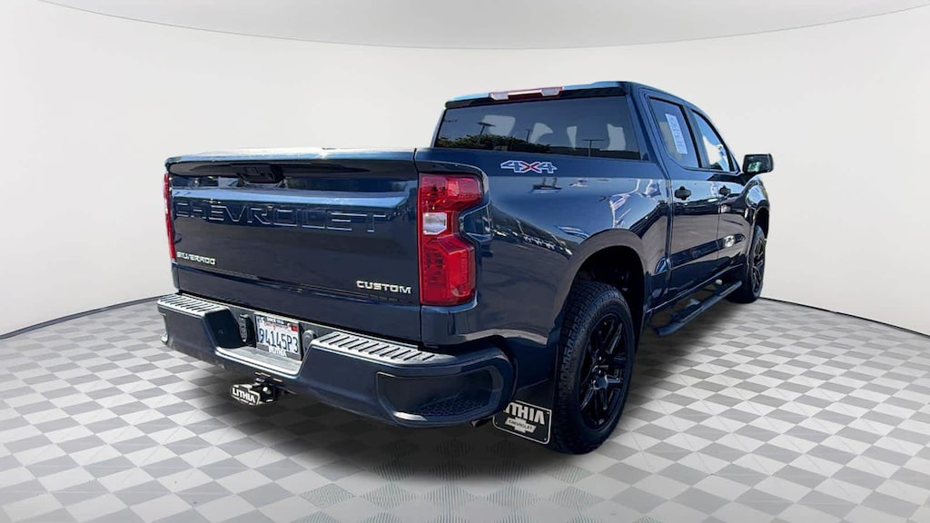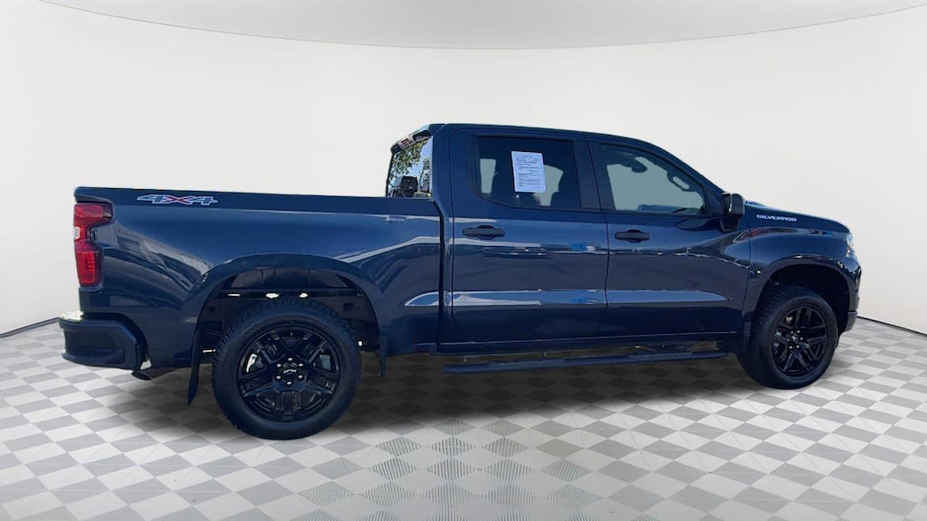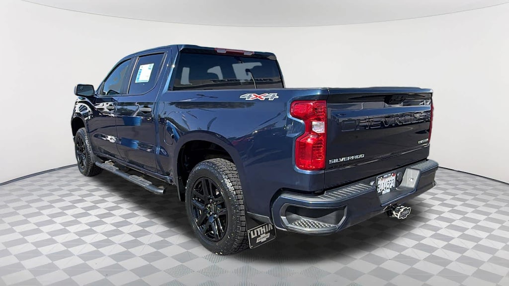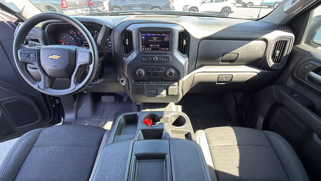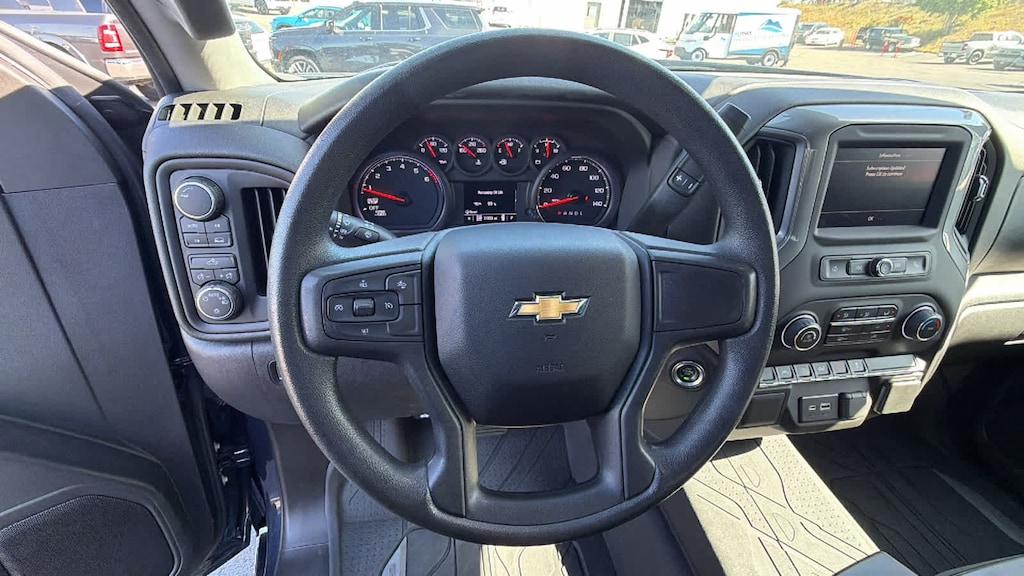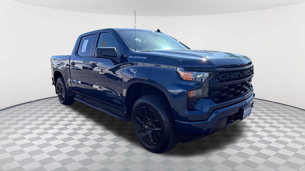 CHEVYTEC SPRAY-ON BEDLINER, BLACK WITH CHEVROLET LOGO (does not include spray-on liner on tailgate due to Black composite inner panel), AUDIO SYSTEM, CHEVROLET INFOTAINMENT 3 SYSTEM 7" diagonal color touchscreen, AM/FM stereo. Additional features for compatible phones include: Bluetooth® audio streaming for 2 active devices, voice command pass-through to phone, wired Apple CarPlay® and Android Auto® capable. (STD), ENGINE, 2.7L TURBO HIGH-OUTPUT (310 hp [231 kW] @ 5600 rpm, 430 lb-ft of torque [583 Nm] @ 3000 rpm) (STD), TRANSMISSION, 8-SPEED AUTOMATIC, ELECTRONICALLY CONTROLLED with overdrive and tow/haul mode. Includes Cruise Grade Braking and Powertrain Grade Braking (STD). Chevrolet Custom with NORTHSKY BLUE METALLIC exterior and JET BLACK interior features a 4 Cylinder Engine with 310 HP at 5600 RPM*.