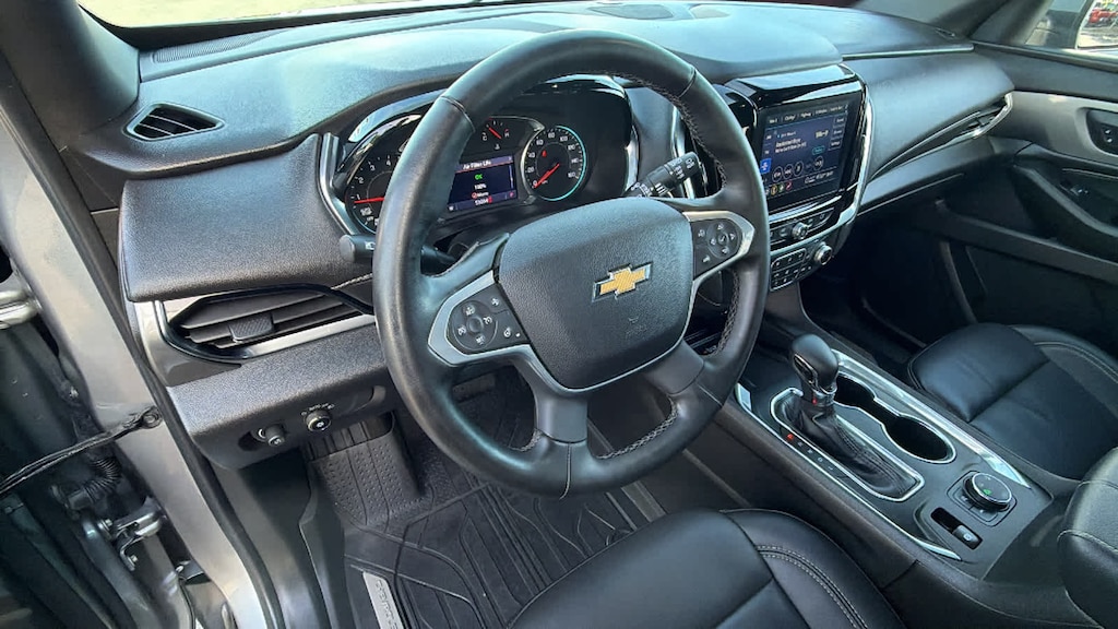 LPO, FLOOR LINER PACKAGE includes (RIA) front and second row all-weather floor liner, LPO, (RIB) third row all-weather floor liner, LPO and (CAV) integrated cargo liner, LPO, LT LEATHER PREFERRED EQUIPMENT GROUP Includes Standard Equipment, AUDIO SYSTEM, CHEVROLET INFOTAINMENT 3 PLUS SYSTEM 8" diagonal HD color touchscreen, AM/FM stereo, Bluetooth® audio streaming for 2 active devices, Apple CarPlay® and Android Auto® capable, voice recognition, in-vehicle apps, cloud connected personalization for select infotainment and vehicle settings. Subscription required for enhanced and connected services after trial period (STD), ENGINE, 3.6L V6, SIDI, VVT (310 hp [232.0 kW] @ 6800 rpm, 266 lb-ft of torque [361 N-m] @ 2800 rpm) (STD), TRANSMISSION, 9-SPEED AUTOMATIC (STD). Chevrolet LT Leather with Sterling Gray Metallic exterior and Jet Black interior features a V6 Cylinder Engine with 310 HP at 6800 RPM*.