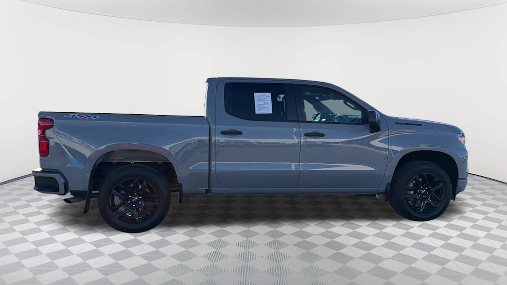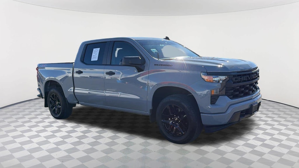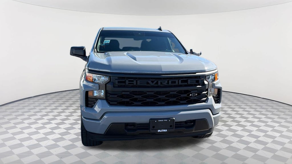 LPO, DARK ESSENTIALS PACKAGE: includes (RIK) Black Silverado nameplates, along with where applicable, Black Custom/LT/RST/LTZ/High Country/Z71/6.2L/Duramax badges, LPO, (SFZ) Black bowtie, LPO and (SB7) Black tailgate CHEVROLET lettering, LPO, (dealer-installed), WHEELS, 20" X 9" (50.8 CM X 22.9 CM) HIGH GLOSS BLACK PAINTED ALUMINUM, AUDIO SYSTEM, CHEVROLET INFOTAINMENT 3 SYSTEM 7" diagonal HD color touchscreen, AM/FM stereo, Bluetooth® audio streaming for 2 active devices, voice command pass-through to phone, Wireless Apple CarPlay® and Wireless Android Auto® compatibility (STD), TRANSMISSION, 8-SPEED AUTOMATIC, ELECTRONICALLY CONTROLLED with overdrive and tow/haul mode. Includes Cruise Grade Braking and Powertrain Grade Braking (STD). Chevrolet Custom with Slate Gray Metallic exterior and Jet Black interior features a 4 Cylinder Engine with 310 HP at 5600 RPM*.