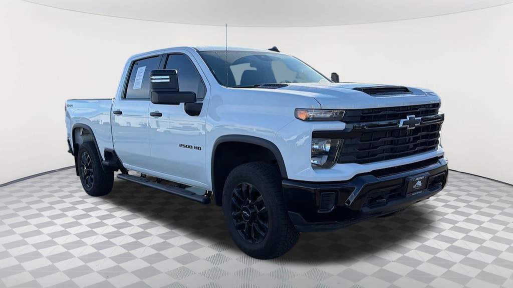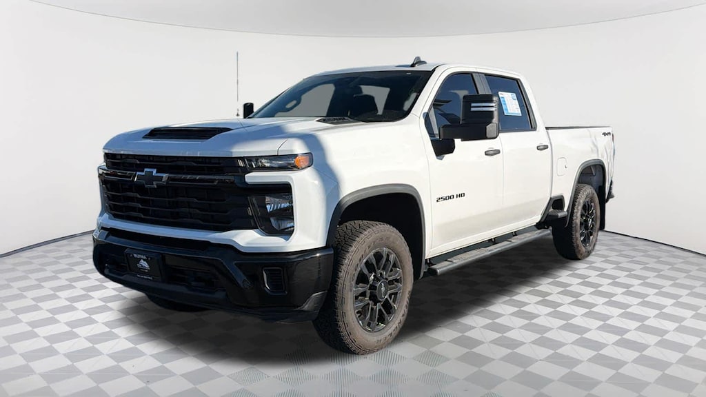 CUSTOM CONVENIENCE PACKAGE includes (BTV) Remote Start with (UTJ) content theft alarm, (KI4) 120-volt power outlet, (KC9) 120-volt bed-mounted power outlet, (UBI) 2 charge-only USB ports for second row, (C49) rear-window defogger, (A2X) 10-way power driver seat including power lumbar, (UF2) bed LED cargo area lighting, (QT5) EZ Lift power lock and release tailgate (Included with (PDX) Custom Value Package. Beginning with the start of production certain vehicles will be forced to include (RFO) Not Equipped with USB ports rear.), CUSTOM BLACKOUT PACKAGE includes (SRI) 20" High gloss Black painted wheels, Black badging, Black steering wheel emblem, Black tailgate lettering with (QK1) tailgate or Black bowtie with available (QK2) Multi-flex tailgate, AUDIO SYSTEM, CHEVROLET INFOTAINMENT 3 SYSTEM 7" diagonal HD color touchscreen, AM/FM stereo, Bluetooth® audio streaming for 2 active devices, voice command pass-through to phone, Wireless Apple CarPlay® and Wireless Android Auto® compatibility (STD), ENGINE, 6.6L V8 with Direct Injection and Variable Valve Timing, gasoline, (401 hp [299 kW] @ 5200 rpm, 464 lb-ft of torque [629 N-m] @ 4000 rpm) (STD), TRANSMISSION, ALLISON 10-SPEED AUTOMATIC (STD). Chevrolet Custom with Summit White exterior and Jet Black interior features a 8 Cylinder Engine with 401 HP at 5200 RPM*.