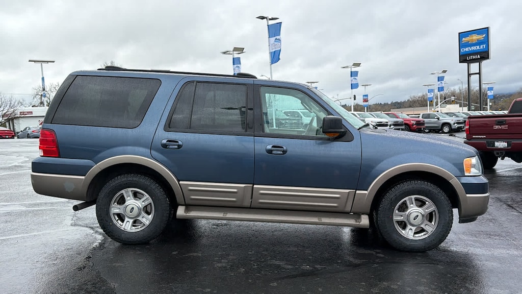 Leather Seats, Third Row Seat, 4x4, Rear Air, Running Boards, Premium Sound System, Multi-CD Changer, Trailer Hitch, Aluminum Wheels, Dual Zone A/C. Rear Seat Audio Controls, Privacy Glass, Keyless Entry, Steering Wheel Controls, Child Safety Locks. Ford Eddie Bauer with Medium Wedgewood Blue Met exterior and Medium Parchment interior features a 8 Cylinder Engine with 260 HP at 4500 RPM*.