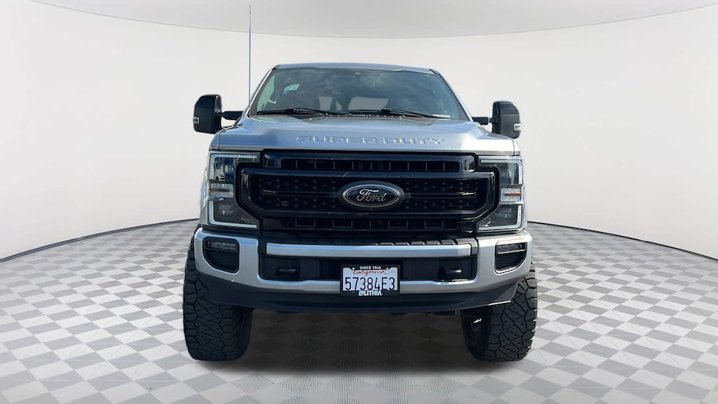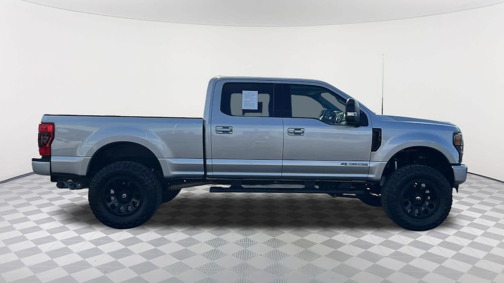 ENGINE: 6.7L 4V OHV POWER STROKE V8 TURBO DIESEL B20 manual push-button engine-exhaust braking and intelligent oil-life monitor, 240 Amp Alternator, 34 Gallon Fuel Tank, 3.31 Axle Ratio, Dual 78-AH 750 CCA Batteries, LARIAT SPORT APPEARANCE PACKAGE ebony black fender vent surround, Black Out Surrounds LED Only Headlamps, Rear Wheel Well Liners (Pre-Installed), Ebony Black Painted Front Grille Bars, Ebony Black Painted Mirror Caps, Tough Bed Spray-In Bedliner, tailgate-guard, black box bed tie-down hooks and black bed attachment bolts, Body-Color Front & Rear Bumpers, Wheels: 20" High-Gloss Black Premium Painted Alum, Tires: LT275/65Rx20E OWL Automatic Transmission, Spare may not be the same as road tire, 6" Ebony Black Angular Running Boards, LARIAT ULTIMATE PACKAGE Power Heated/Ventilated Driver Seat w/Memory, PowerScope Trailer Tow Mirrors w/Memory, EASY ENTRY®/Exit Memory Driver's Seat Feature, Tailgate Step & Handle, LED Box Lighting, LED Center High-Mounted Stop Lamp (CHMSL), Intelligent Access w/Push-Button Start, Power Heated/Ventilated Passenger Seat, Voice-Activated Touchscreen Navigation System, pinch-to-zoom capability, SiriusXM Radio Traffic and Travel Link, Note: SiriusXM Traffic and Travel Link includes a, SiriusXM Traffic and Travel Link services are not available in Alaska and Hawaii, After your trial period ends, SiriusXM audio and data services each require a subscription sold separately, or as a package, by SiriusXM Radio Inc, See SiriusXM customer agreement for complete terms at, PRO TRAILER BACKUP ASSIST Ultimate Trailer Tow Camera System, rear view camera, 360 degree camera system, rear CHMSL camera, trailer reverse guidance and LED center high-mounted stop lamp, TWIN PANEL POWER MOONROOF map lights and moonroof switches, ADAPTIVE CRUISE CONTROL & COLLISION WARNING brake support, ELECTRONIC-LOCKING W/3.31 AXLE RATIO, HEATED REAR SEATS, TRANSMISSION: TORQSHIFT 10-SPEED AUTOMATIC SelectShift and selectable drive modes: normal, tow/haul, eco, deep sand/snow and slippery. Ford LARIAT with Iconic Silver exterior and Black interior features a 8 Cylinder Engine with 475 HP at 2600 RPM*.