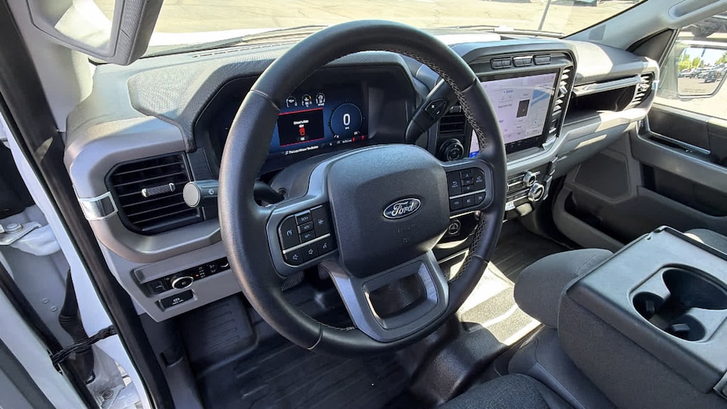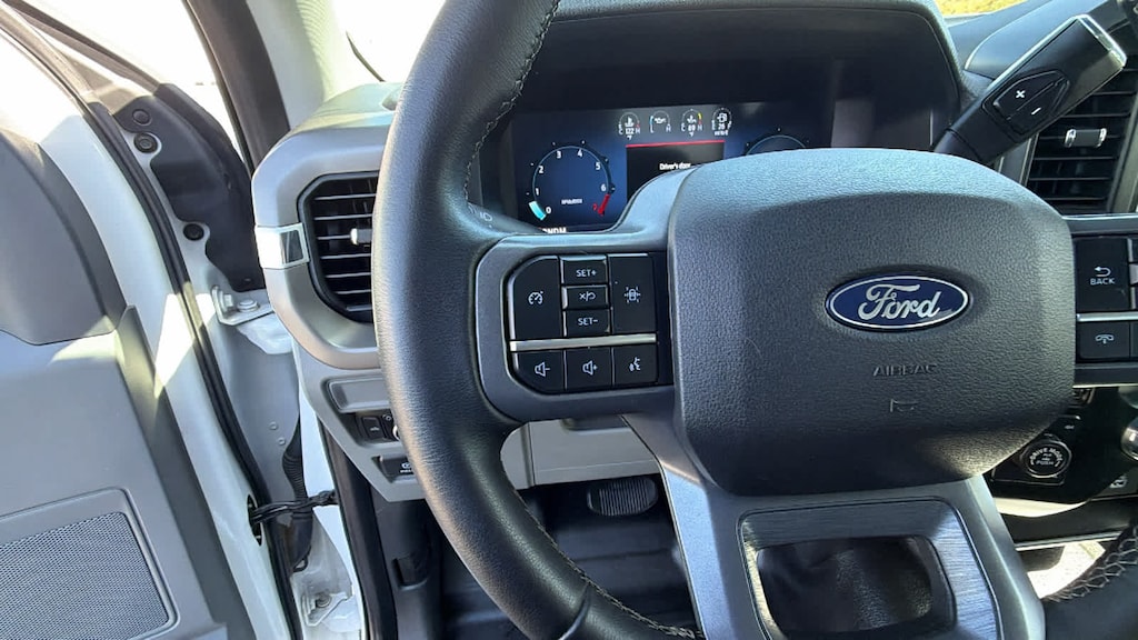 TRANSMISSION: ELECTRONIC 10-SPEED AUTOMATIC SelectShift w/progressive range select and selectable drive modes: normal, ECO, sport, tow/haul, slippery, deep snow/sand and mud/rut (STD). Ford XLT with Oxford White exterior and Medium Dark Slate interior features a 8 Cylinder Engine with 400 HP at 6000 RPM*.