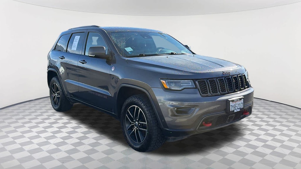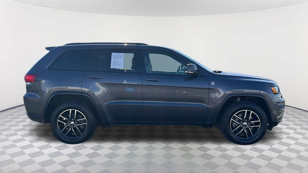 ENGINE: 5.7L V8 MDS VVT 3.09 Rear Axle Ratio, 230MM Rear Axle, 700 Amp Maintenance Free Battery, Anti-Lock 4-Wheel Disc HD Brakes, Quadra-Trac II 4WD System, GVWR: 6,800 lbs, TRAILHAWK LUXURY GROUP Bi-Xenon HID Headlamps, Power Tilt/Telescope Steering Column, Cargo Compartment Cover, Auto High Beam Headlamp Control, Rain Sensitive Windshield Wipers, LED Fog Lamps, Automatic Headlamp Leveling System, LED Daytime Running Headlamps, Dual-Pane Panoramic Sunroof, REAR DVD ENTERTAINMENT CENTER Rear Seat Video System, Blu-Ray Compatible Dual Screen Video, JEEP ACTIVE SAFETY GROUP Advanced Brake Assist, Parallel & Perp Park Assist w/Stop, Rain Sensitive Windshield Wipers, Adaptive Cruise Control w/Stop, Full Speed FWD Collision Warn Plus, Lane Departure Warning Plus, BLIND SPOT & CROSS PATH DETECTION Auto Dim Exterior Passenger Mirror, RADIO: UCONNECT 3C NAV W/8.4" DISPLAY HD Radio, Rear View Auto Dim Mirror, Integrated Voice Command w/Bluetooth®, GPS Navigation, SiriusXM Travel Link, Roadside Assistance & 9-1-1 Call, SiriusXM Traffic, Uconnect Access, (Registration Required), 8.4" Touchscreen Display, TRANSMISSION: 8-SPEED AUTOMATIC (8HP70). Jeep Trailhawk with Granite Crystal Metallic Clearcoat exterior and Ruby Red/Black interior features a 8 Cylinder Engine with 360 HP at 5150 RPM*.