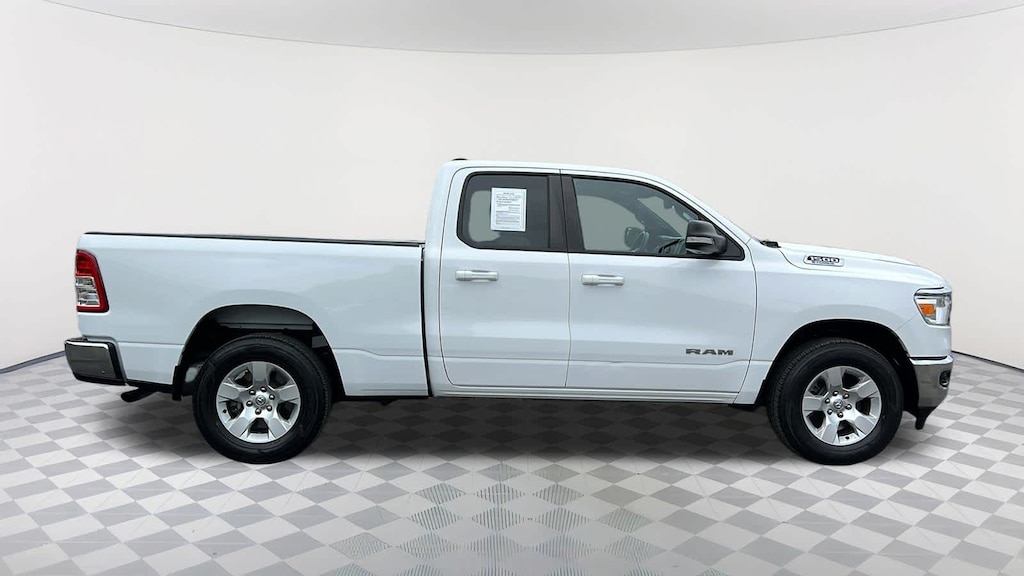 BIG HORN LEVEL 1 EQUIPMENT GROUP Google Android Auto®, SiriusXM Radio Service, Bluetooth® Handsfree Phone & Audio, USB Host Flip, Rear Window Defroster, Integrated Center Stack Radio, Rear View Auto Dim Mirror, For Details, Visit DriveUconnect.com, Power Adjustable Pedals, For More Info, Call 800-643-2112, Rear Power Sliding Window, Rear Dome w/On/Off Switch Lamp, Connectivity - US/Canada, Glove Box Lamp, 4G LTE Wi-Fi Hot Spot, Exterior Mirrors w/Heating Element, Power 8-Way Driver Seat, Auto Dim Exterior Driver Mirror, Radio: Uconnect 5 W w/8.4" Display, 8.4" Touchscreen Display, Class IV Receiver Hitch, Black Premium Power Mirrors, Apple CarPlay®, Big Horn IP Badge, SiriusXM Satellite Radio, Exterior Mirrors w/Supplemental Signals, Exterior Mirrors Courtesy Lamps, Universal Garage Door, ANTI-SPIN DIFFERENTIAL REAR AXLE, REMOTE START SYSTEM, TRANSMISSION: 8-SPEED AUTOMATIC (850RE) (STD), ENGINE: 3.6L V6 24V VVT ETORQUE UPG I (STD). Ram Big Horn with Bright White Clearcoat exterior and Diesel Gray/Black interior features a V6 Cylinder Engine with 305 HP at 6400 RPM*.