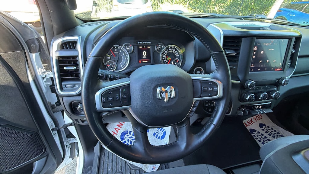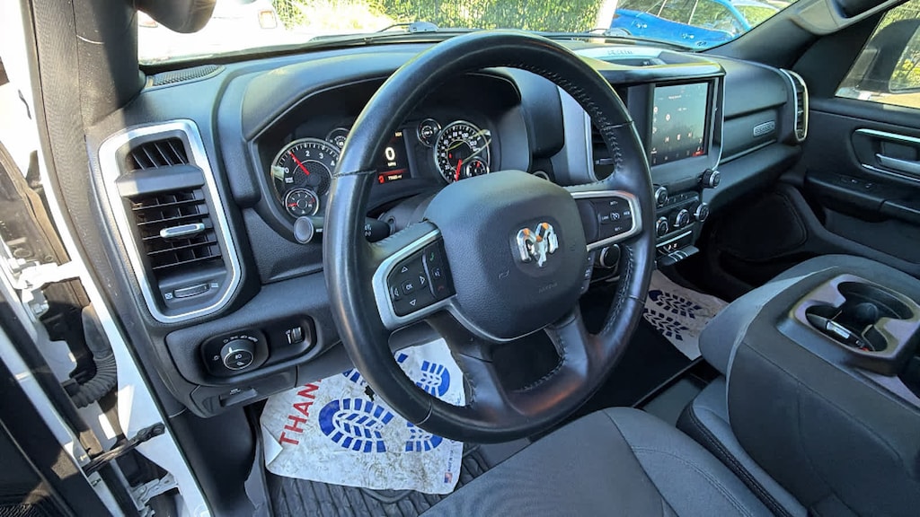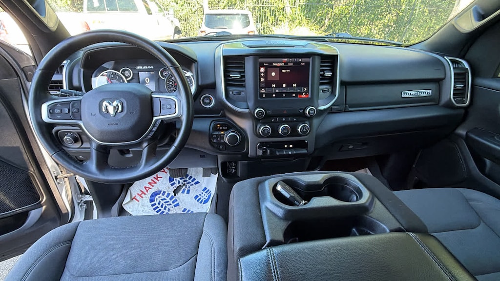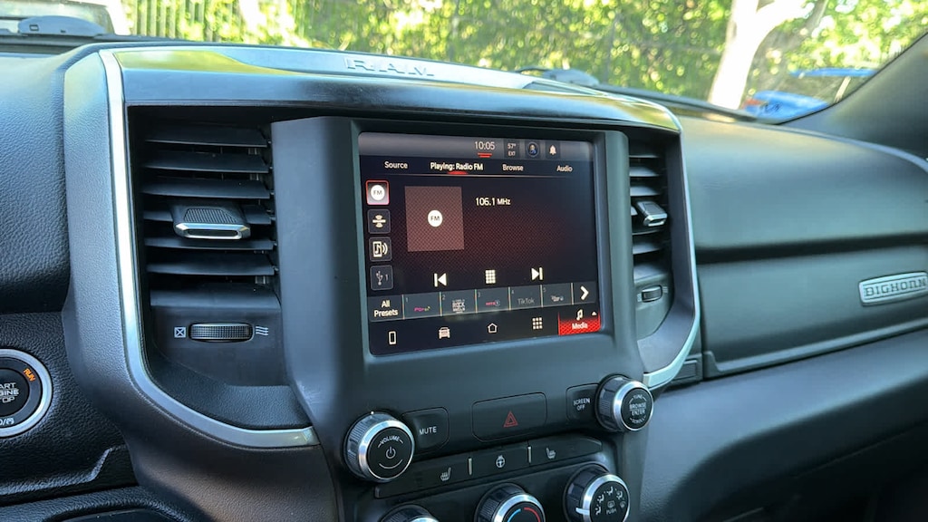 BIG HORN LEVEL 1 EQUIPMENT GROUP Google Android Auto®, Bluetooth® Handsfree Phone & Audio, USB Host Flip, Rear Window Defroster, Integrated Center Stack Radio, Rear View Auto Dim Mirror, For More Info, Call 800-643-2112, Rear Power Sliding Window, Rear Dome w/On/Off Switch Lamp, Front Fog Lamps, Connectivity - US/Canada, Glove Box Lamp, 4G LTE Wi-Fi Hot Spot, Auto Dim Exterior Driver Mirror, Heated Front Seats, Radio: Uconnect 5 W w/8.4" Display, Heated Steering Wheel, 8.4" Touchscreen Display, Class IV Receiver Hitch, Black Premium Power Mirrors, Apple CarPlay®, Big Horn IP Badge, SiriusXM Satellite Radio, Exterior Mirrors w/Supplemental Signals, Exterior Mirrors Courtesy Lamps, Passenger Sun Visor w/Illuminated Mirror, Electric Shift On Demand Transfer Case, Power-Folding Mirrors, 2nd Row, WHEELS: 20" X 9" ALUMINUM CHROME CLAD (WRK), REMOTE START SYSTEM, TRANSMISSION: 8-SPEED AUTOMATIC (850RE) (STD), ENGINE: 3.6L V6 24V VVT ETORQUE UPG I (STD). Ram Big Horn with Bright White Clearcoat exterior and Diesel Gray/Black interior features a V6 Cylinder Engine with 305 HP at 6400 RPM*.