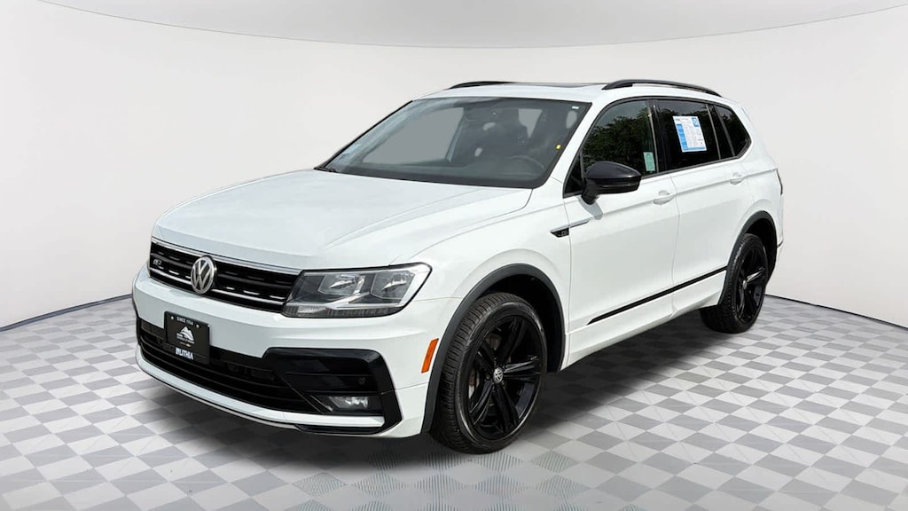 3RD ROW SEAT PACKAGE 50/50 split fold-flat, 2-passenger, 3rd row bench seat w/armrest, REAR ROOF-EDGE SPOILER, FRAMELESS AUTO-DIMMING REARVIEW MIRROR electronic compass and HomeLink garage door opener. Volkswagen SEL R-Line Black with PURE WHITE exterior and BLACK LEATHERETTE interior features a 4 Cylinder Engine with 184 HP at 4400 RPM*.
