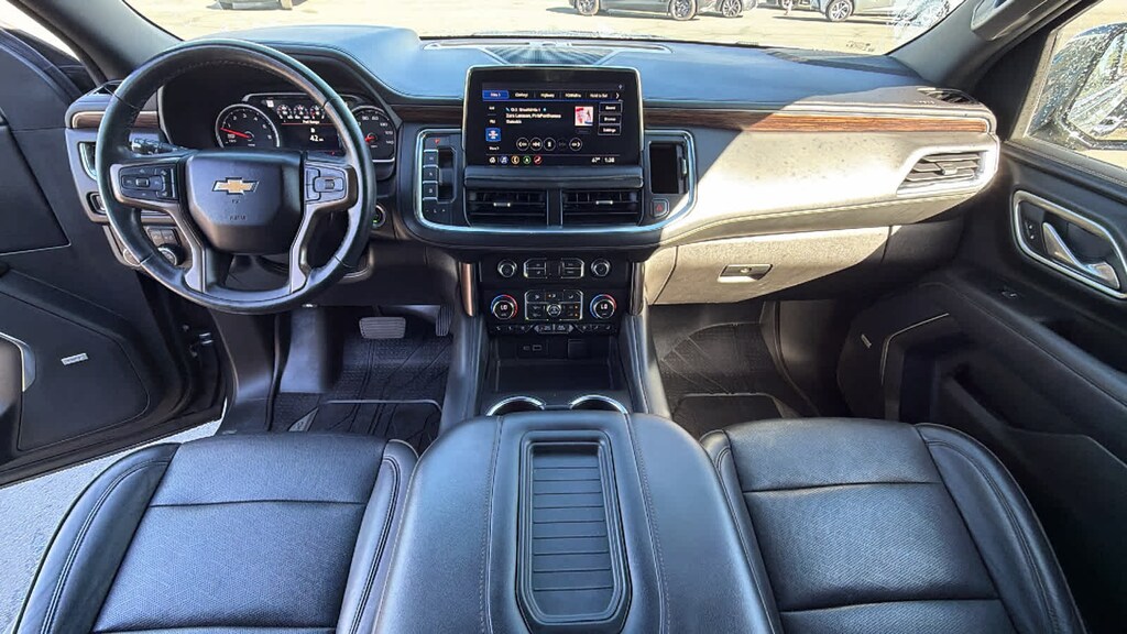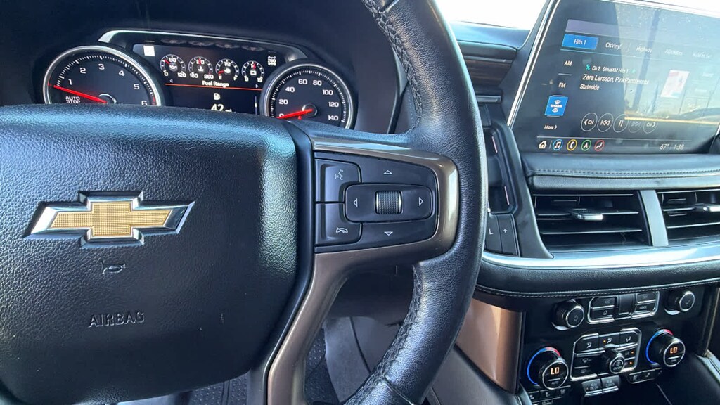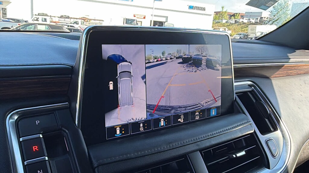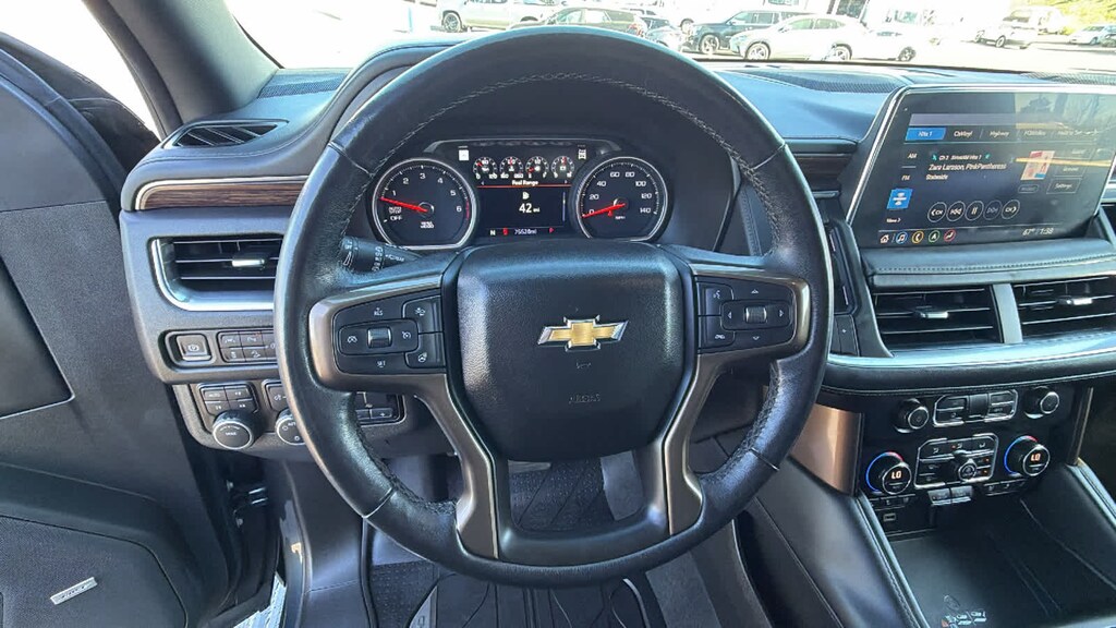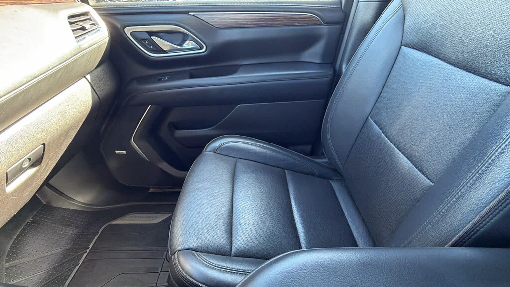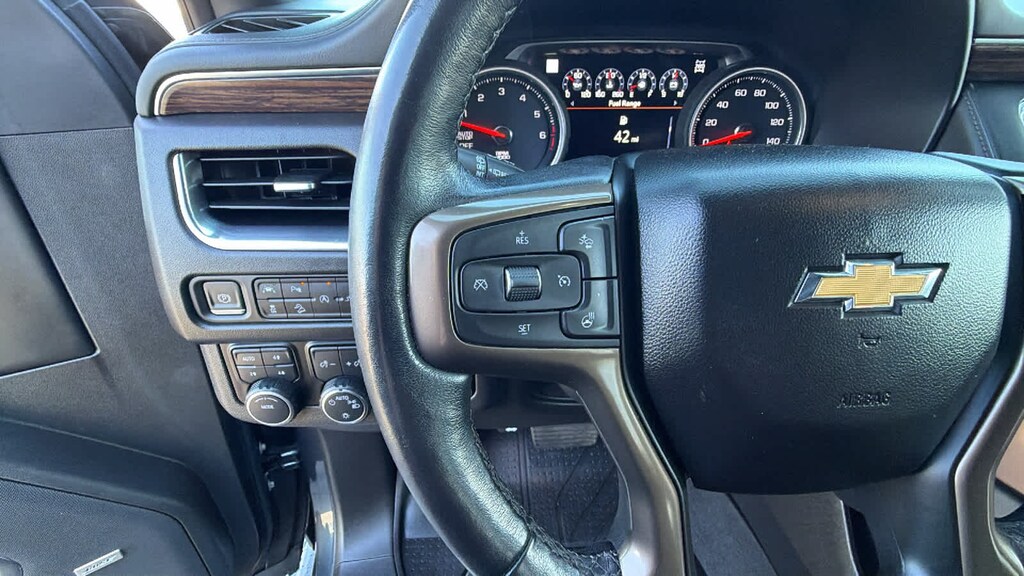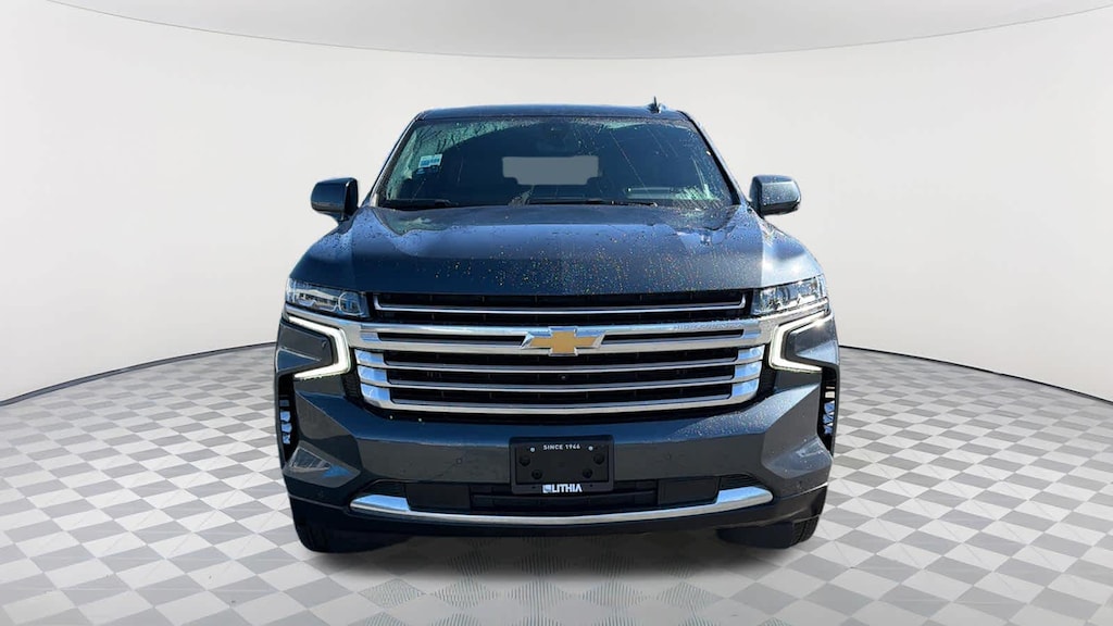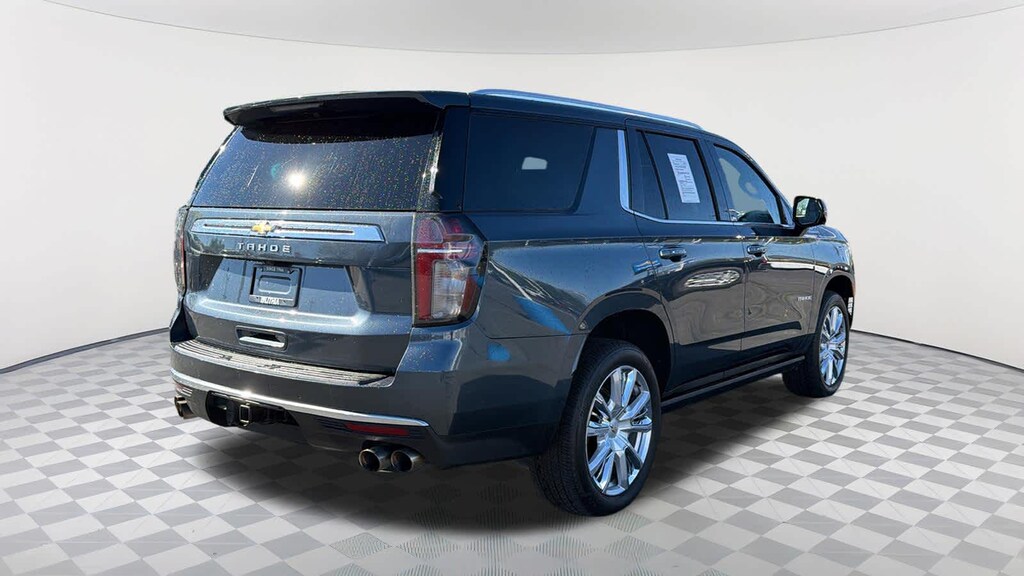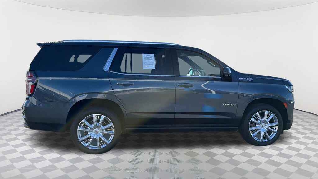 REAR SEAT MEDIA SYSTEM includes dual rear seat-mounted 12.6" diagonal color-touch LCD HD screens, Wi-Fi wireless projection capability, two 2-channel wireless infrared digital headphones with 2 HDMI ports on the back of the center console; compatible with Bluetooth® headphones, ASSIST STEPS, POWER-RETRACTABLE with perimeter lighting, SUNROOF, POWER PANORAMIC, DUAL-PANE, TILT-SLIDING with express-open and close and power sunshade, ADAPTIVE CRUISE CONTROL, AUDIO SYSTEM, CHEVROLET INFOTAINMENT 3 PREMIUM SYSTEM WITH CONNECTED NAVIGATION, 10.2" DIAGONAL HD COLOR TOUCHSCREEN AM/FM stereo, Bluetooth® audio streaming for 2 active devices, Apple CarPlay® and Android Auto® capable, enhanced voice recognition, additional memory for in-vehicle apps, cloud connected personalization for select infotainment and vehicle settings. Subscription required for enhanced and connected services after trial period. (STD), ENGINE, 6.2L ECOTEC3 V8 with Dynamic Fuel Management, Direct Injection and Variable Valve Timing, includes aluminum block construction (420 hp [313 kW] @ 5600 rpm, 460 lb-ft of torque [624 Nm] @ 4100 rpm) (STD), TRANSMISSION, 10-SPEED AUTOMATIC electronically controlled with overdrive, includes Traction Select System including tow/haul (Most vehicles built on or after 6-7-2021 with a V8 engine will have (NSS) Not Equipped with Automatic Stop/Start, which removes Automatic Stop/Start, Engine control stop/start disable button and its content.) (STD), ADVANCED TRAILERING PACKAGE includes (PZ8) Hitch Guidance with Hitch View, (JL1) trailer brake controller and (U1D) Advanced Trailering System Also includes (UKV) Extended Side Blind Zone Alert.). Chevrolet High Country with Shadow Gray Metallic exterior and Jet Black interior features a 8 Cylinder Engine with 420 HP at 5600 RPM*.